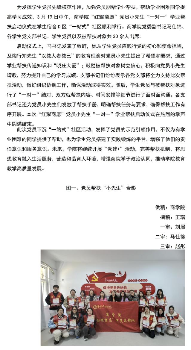 “红耀商愿”党员小先生一对一学业帮扶启动仪式活动