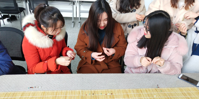 图一:现场教女生编制玉饰