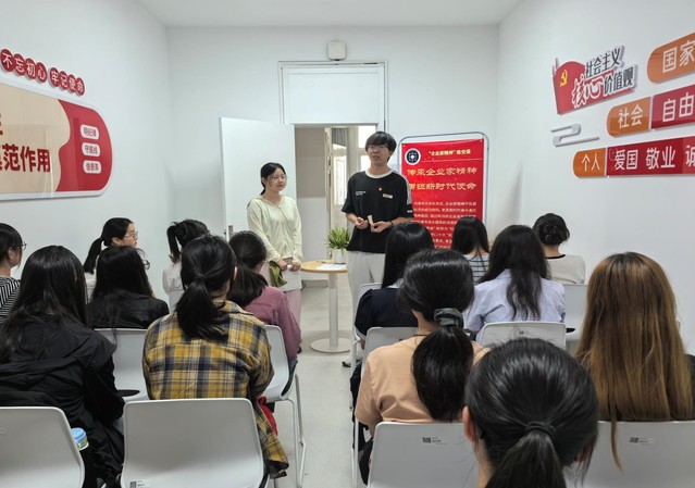 活动中,“红耀商愿”党员先锋队以任正非、张謇、王兴兴、雷军、卢作孚、汪滔等企业家的事迹为切入点,生动诠释了企业家精神的深刻内涵。通过分析华为的自主创新之路、卢作孚“教育兴国”的爱国精神、大疆科技汪滔的攻坚意志等案例,提炼出“敢为人先的创新胆识”“实业报国的家国情怀”“百折不挠的攻坚意志”等精神特质,并绘制出新时代企业家精神图谱。学生党员结合校园成长与职业规划,从理论学习、社会实践、创新创业等角度探讨了青年党员践行企业家精神的实践路径,提出“以专业服务社会、以创新回应时代”的行动倡议。
