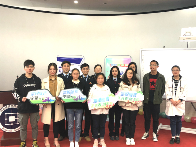 李帅威老师首先对国税、地税征管体制改革进行了相关的说明,并向同学们介绍了税务局。其中,就与我们息息相关的纳税服务进行了详细的介绍。随后,李老师又用通俗易懂的语言,深入浅出地对减税降费政策进行了解读,其中重点解读了大学生创业税收优惠政策。第一,收费减免,即纳税人领购发票时无需再支付发票的工本费。第二,税收优惠,分别从毕业年度内高校毕业生自主从事个体经营、自主经营小型微利企业和企业吸纳大学生就业税收优惠这三个方面进行解读。最后,通过《九零后与阳光团队的故事》这一视频帮助大家了解纳税服务和职业体验。此次讲座过程中,李老师与同学们积极互动,并就同学提出的相关问题进行了专业的回答,赢得了同学们的“点赞”,讲座气氛热烈。