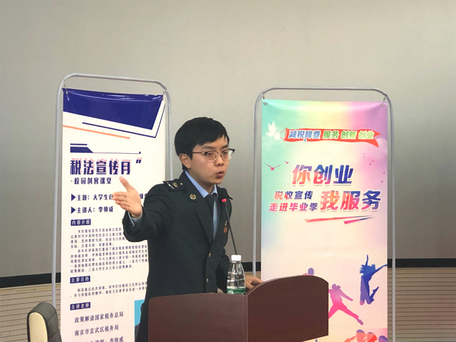4月29日,为响应税法宣传月,帮助学生了解自主创业相关税收优惠政策,做好大学生职前教育,ylzzcom永利总站线路检测邀请了国家税务总局、南京市玄武区税务局税收知识普法讲师李帅威,于崇一楼文北200教室做大学生自主创业税收优惠解读讲座。