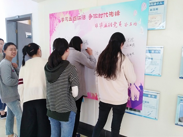 非毕业班党员在签名板上签名