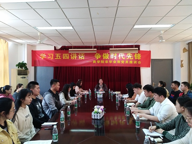 座谈会上,三十多名非毕业班党员依次介绍了自己入党以后的思想感悟以及学习、工作上取得的成绩,围绕学习、考研、未来就业交流了短期目标和长期规划。党总支书记魏玉梅带领学生党员共同学习了习近平总书记在纪念五四运动100周年大会上的重要讲话,重温了五四运动的伟大历史意义和时代价值,并结合实际重点学习了习近平总书记对新时代中国青年发扬五四精神提出的六点要求。最后,魏玉梅书记在总结讲话中对非毕业班党员提出了希望和要求,一是要在学习上起到先锋模范作用,在争取优异成绩的同时主动关心帮助周围同学;二是要在安全、宿舍生活以及班级各项活动中起到带头作用,增强安全意识,发现安全隐患及时上报;三是要在遵守校纪校规方面起到示范、先锋带头作用,尤其是在即将到来的暑期准备留校学习的党员更要带头遵守学校各项规章制度。同时她希望在场非毕业班党员继承五四精神,珍惜时代,担负使命,勇立潮头,争做先锋,积极拥抱新时代。