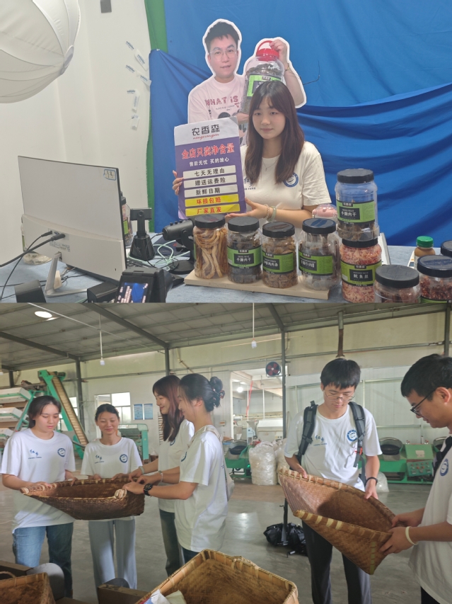 最后,同学们来到了绩溪县专注电商扶贫模式的凡农农业科技有限公司,了解公司“回收+加工包装+网络销售”的经营理念和“电商企业+基地贫困户”的发展模式,参观其井然有序的包装车间,并亲身体验了直播带货活动,化身“乡村推荐官”助力提升农产品的销量,为农民做实事。