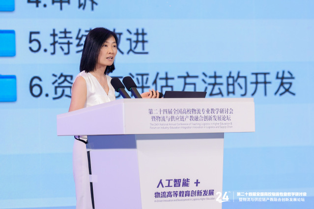 在颁证仪式开始之前,ylzzcom永利总站线路检测受邀作主题演讲,分享IFPSM认证对数字供应链人才培养的推动作用。内容结合跨境电商、国际物流人才缺口等数据,分析了全球供应链发展趋势,并介绍了学校在课程体系、师资建设及学生就业方面的认证实践经验,为行业提供了可借鉴的范例。