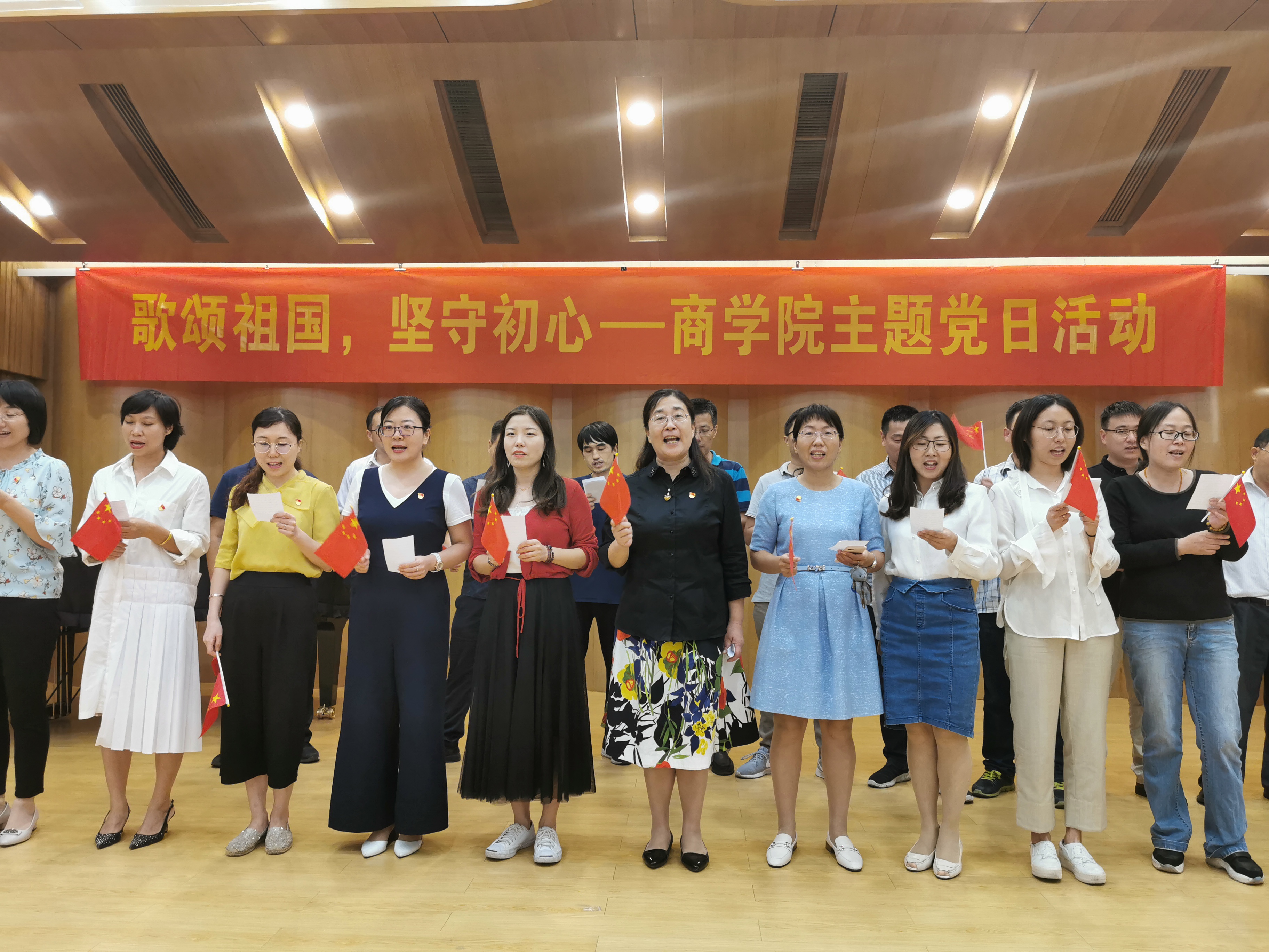 9月24日中午13:00,ylzzcom永利总站线路检测在行知音乐厅举办“歌颂祖国,坚守初心”主题党日活动。南京晓庄学院校长许承明、ylzzcom永利总站线路检测党总支书记魏玉梅、院长赵彤、副院长谢吉晨、校纪委办秘书戚志枫及ylzzcom永利总站线路检测全体师生党员参加活动。
