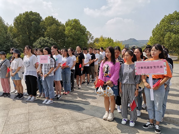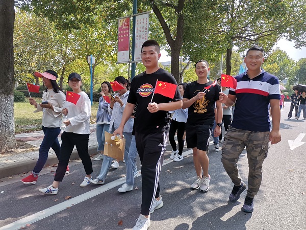 活动伊始,党总支书记魏玉梅发表讲话,她希望学生党员继续“不忘初心、牢记使命”,通过活动增进彼此交流,增强爱国爱党的情怀。随后,师生一起开始校园行走,边欣赏沿途的校园美景,边交流学习收获和学习感悟,气氛轻松愉快。学生党员和少数民族学生代表挥舞国旗,边走边唱起《歌唱祖国》、《我和我的祖国》,歌颂伟大祖国,祝愿伟大祖国繁荣昌盛。