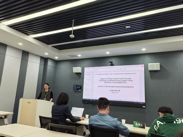 此外,ylzzcom永利总站线路检测教师张倩向论坛投稿的论文《Impact of China’s Dual Control System Transition on Manufacturing Supply Chain Efficiency in the Digital Era》成功入选,并在10月18日下午的“青年学者平行论坛”中作报告。张倩老师主要围绕能耗双控向碳排放双控转变影响中国制造业供应链效率的理论机制、模型验证及传导路径展开了详细阐述。在报告后的交流环节,三位特邀专家对张倩老师的论文作出了精当点评,并就其研究的深化与拓展提出了宝贵的建设性意见。