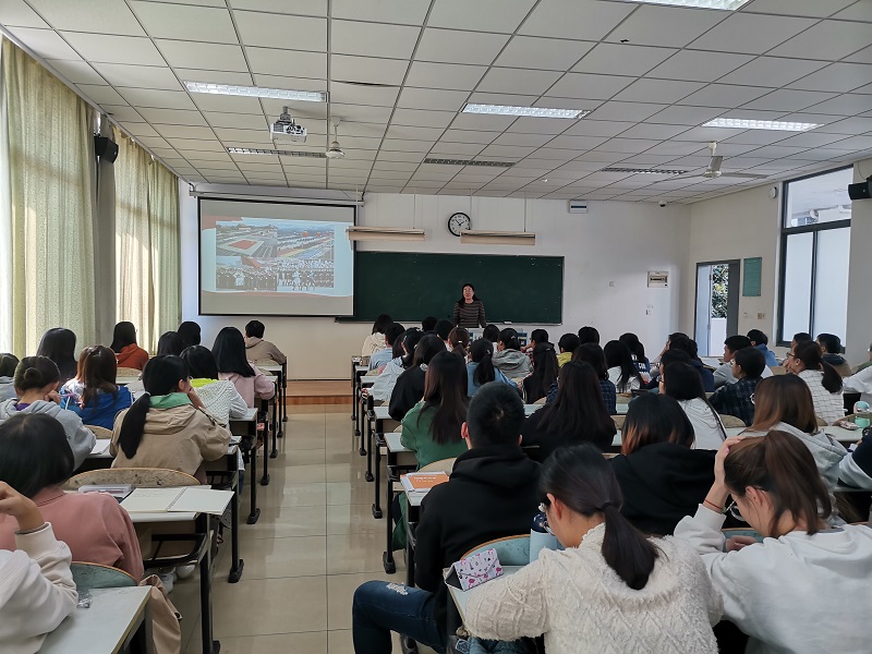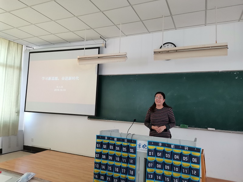 翟金德老师就本期分党校的培训时间、培训内容、培训要求、组织纪律、考试形式和要求等方面进行了详细解读。在简短而庄重的开学典礼后,党总支书记魏玉梅为全体学员讲授题为《学习新思想,奋进新时代》的第一次党课。她结合建国70周年庆典活动以及习近平总书记在庆祝中华人民共和国成立70周年大会上的讲话内容,希望同学们不断强化爱国意识,凝聚爱国情怀,端正入党动机。党课重点围绕“立足时代之基,回答时代之问的科学理论”讲述了习近平新时代中国思想产生的依据、背景和条件;围绕“系统完备的科学体系,特色鲜明的理论品格”讲述了习近平新时代中国思想的主要内容;围绕“经过实践检验,富有实践伟力的强大思想武器”讲述了习近平新时代中国思想的作用和伟大意义。