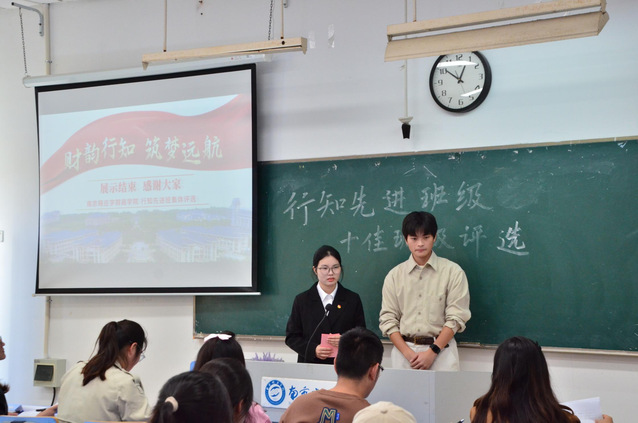 评审现场,23财务管理1班、23行政管理班、24财务管理1班依次登台,通过精心制作的PPT,系统汇报了班级在思想引领、学业发展、实践育人、文化凝聚等方面的建设成效。各班不仅在学科竞赛、志愿服务、社会实践等领域屡获校级、省级乃至国家级荣誉,更在四六级通过率、图书借阅量、课堂出勤率等关键学风指标上表现突出。