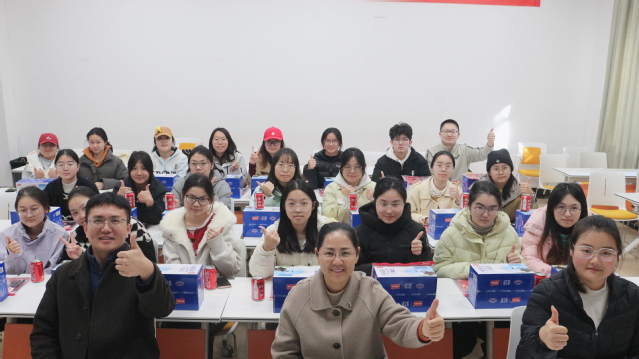 随后,学院为考研学生发放了精心准备的“考研加油包”,包含考试文具、营养品等实用物资。学生们纷纷表示,学院的关怀让他们倍感温暖,更加坚定了考研信心。与会师生合影留念,慰问会在欢乐、温馨的氛围中结束。