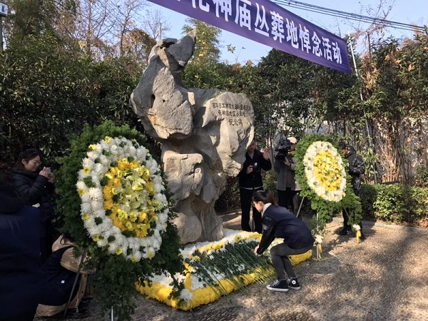 活动当天,学生们先后寻访了普德寺和花神庙两处丛葬地纪念碑。了解丛葬地埋藏的过往、敬献鲜花,缅怀死难同胞,表达铭记历史之心。上午10点,当凄厉的警报声在南京城的上空响起,全体师生伫立一分钟,为侵华日军南京大屠杀死难同胞默哀。