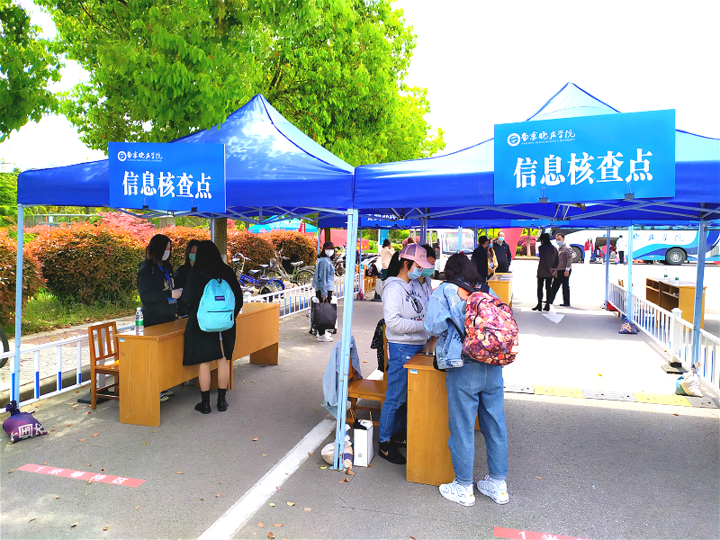 南京晓庄学院党委书记陈华、党委副书记华春、学工处处长李伟、副处长崔伟分别来到北门报到点,了解ylzzcom永利总站线路检测学生当日返校情况、报到中的具体措施以及返校后的工作部署。ylzzcom永利总站线路检测从早上7点至下午17点负责学校北门六个通道的返校接待工作,53名志愿者在辅导员的带领和安排下各司其职、分工明确、准确高效完成进校引导、行李搬运、信息审验、签到打卡等工作。返校当天,ylzzcom永利总站线路检测还特设“党员服务站”为学生临时存放行李,捆扎散落的行李,得到了学生的一致好评。