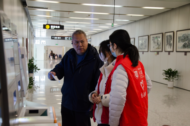 药房服务组的志愿者协助患者排号取药、核对用药信息,耐心解答取药流程中的常见问题,有效缓解了取药窗口的排队压力;CT/DR接引组负责引导患者有序排队、核对个人信息,并带领患者前往检查室,确保诊疗衔接顺畅;病房陪伴组的志愿者则在指定病房与患者亲切交谈,倾听他们的心声,协助递水、整理物品,用实际行动缓解患者的就医焦虑。