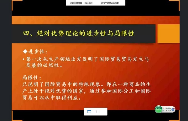 巡视小组对当天所有线下课程进行巡视,其中包括王圣元老师为18级各专业开设的选修课的《组织行为学》 ,赵玉阁老师为19国贸单招班教授的《国际贸易学》,高振杨老师为17行管开设的《比较政府与政治》等。