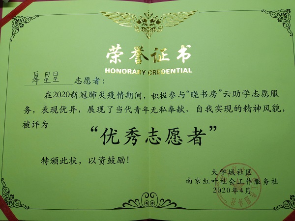 皋星星志愿服务证书