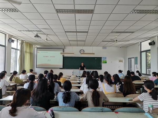 翟金德老师就本期分党校的培训时间、培训内容、培训要求、组织纪律、考核安排等方面进行了详细解读。开班典礼结束后,党总支书记魏玉梅为全体学员讲授本期分党校培训第一次党课——《知史爱党、知史爱国》。她结合中共中央、国务院2019年11月印发的《新时代爱国主义教育实施纲要》的总体要求和主要内容,向学员强调了新时代广泛开展爱国主义教育、党史国史教育的重要性,并就中国共产党最初的创立、发展过程及重要历史事件和人物等方面进行了详细讲解,对党的指导思想的产生发展过程、主要内容和历史地位进行了全面解读。最后,她引用党的十九大报告中对新时代青年提出的新要求寄语广大学员,希望大家知史爱党、知史爱国,进一步提升自我的党性修养,坚定理想信念,在不懈奋斗中放飞青春梦想,书写人生华章。
