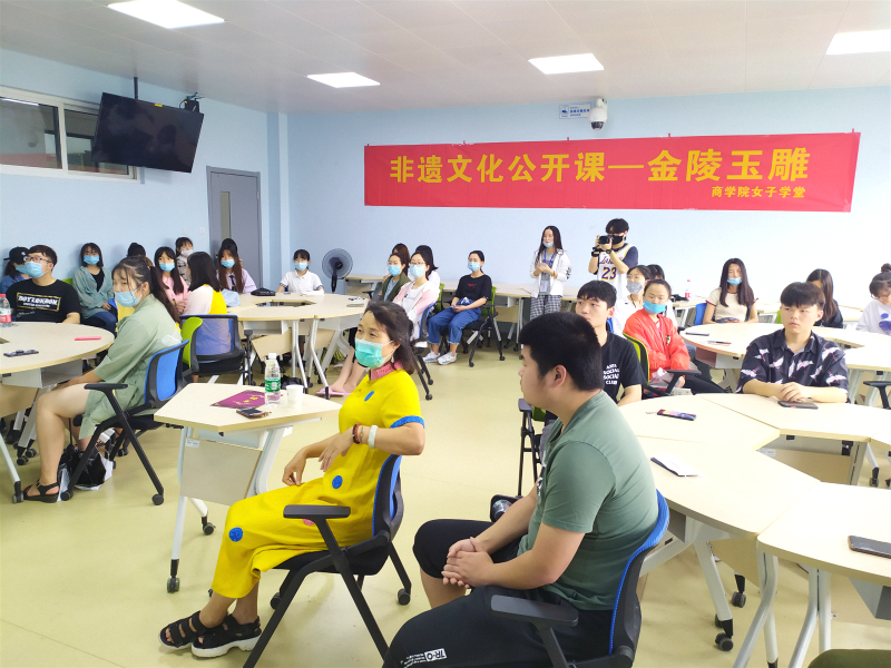6月16日下午,在永利官网方山校区行知组团D楼303教室,ylzzcom永利总站线路检测女子学堂为弘扬中国优秀传统文化,践行工匠精神,培养女生优雅、蕙质、独立、自信的素养与品质,面向全校女学生开展“晓庄女子学堂”特色非遗活动,特邀请江苏省正高级工艺美术大师、中华优秀传统文化与课程融合创建工程顾问喻梅老师担任主讲人,为50名学生代表带来了一场别开生面的金陵玉雕公开课。