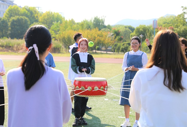 比赛开始前,裁判人员耐心地给各班级参赛人员讲解比赛规则,在比赛中能秉持“友谊第一,比赛第二”的原则,赛出风格,赛出水平。九个参赛队伍的同学们认真聆听、热身准备,队员们依次上场模拟演练一分钟,以积极轻松的心态迎接正式比赛。比赛过程中,每一队的放球队员在裁判下达的口令后迅速将球放在鼓面中央,其他队员们分列在不同方向拉紧绳子,眼睛紧紧盯着球,身体平稳地跟随球移动,尽力把球控制的更稳、颠的更多。经过激烈的角逐,20财管3+4班以213分的好成绩夺得桂冠,20工管文2班以146分的成绩取得第二名的好成绩,20国贸单招班以136分的成绩获得第三名。