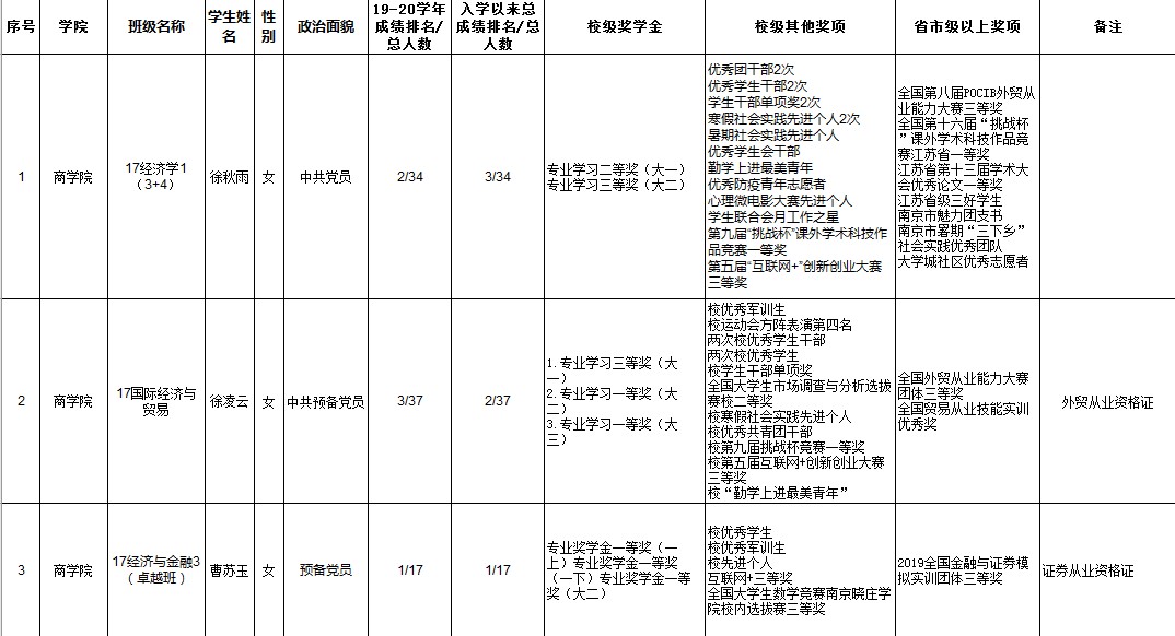 根据《南京晓庄学院国家奖学金评选办法(试行)》(南晓院学[2015]06号)要求和《关于做好永利官网2020年国家奖学金评审工作的通知》文件精神,经学生自主申报、ylzzcom永利总站线路检测学生工作办公室初审、ylzzcom永利总站线路检测党总支审议,现将拟推荐获得2020年国家奖学金的学生名单予以公示(排名不分前后):