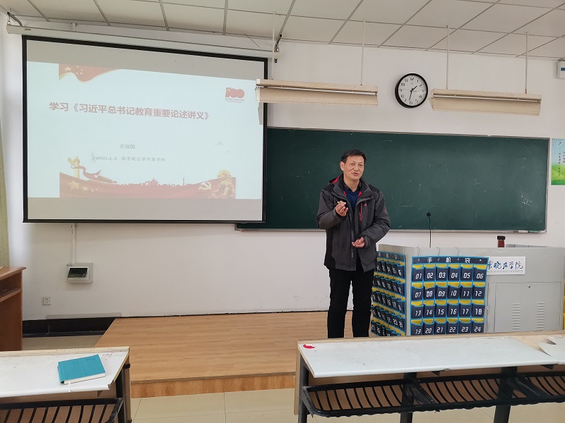 史兹国书记以学习《习近平总书记教育重要论述讲义》为主题为学员进行讲授,首先介绍了习近平总书记教育重要论述的时代背景、科学内涵和重大意义,并结合2021年全国两会上习近平总书记论办好人民满意的教育讲话精神,对教育事业的发展以及面临的现实问题和原因分析进行了梳理,通过对1998—2020年小学教育、初等教育至高等教育各阶段录取人数数据分析,向学员们介绍了新时代高等教育正在从大众化阶段向普及化阶段跨越,并勉励现场学员要制定个人职业规划和学业规划,认真考虑是否继续深造,学好专业知识,积极服务同学,不断发挥模范带头作用。