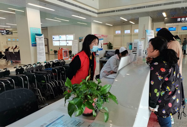 志愿者在逸夫医院为患者服务
