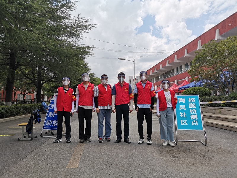 学院教职工党员50名,48名党员报名参加志愿服务。学院党委综合考虑到部分党员年龄、身体状况及出行轨迹等因素,8月5日选派5名教职工党员,作为学院第一批志愿服务队奔赴江宁区横溪街道陶吴社区开展第五次核酸检测服务工作。党员同志接到命令没有一丝犹豫,全身心积极投入到防控第一线,配合当地工作人员做好体温测量、查验健康码、维持现场秩序等工作。在询问党员老师是否有困难时,有老师表示困难肯定有,但现在不是说困难的时候,现在疫情当前,非常时期,组织需要,有困难就要想办法克服困难。