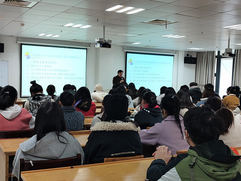 李昌庚处长以经济法为主干,分别从“国有企业市场定位”、“中国国有企业改革现阶段所面临的问题”、“国内外企业改革的经验教训”、“中国进一步深化国企改革的路径依赖”、“中国国企治理模式回应”五个方面向我们深入讲解了法律层面上的中国国有企业改革,从点到面向同学们普及知识,深入浅出带动同学们探索经济与法治的联系。同学们认真听讲,与李昌庚处长进行友好互动,气氛活跃,讲座圆满结束。