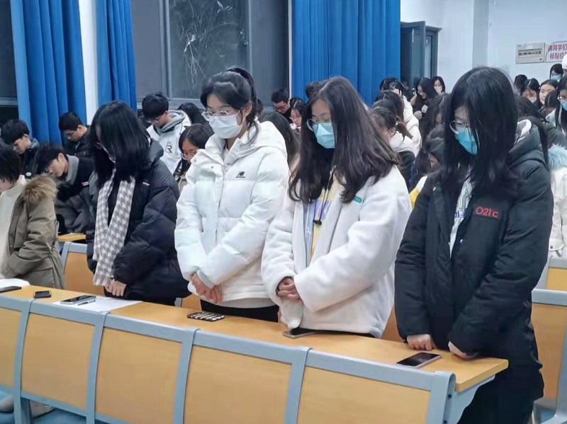 同学们为罹难者默哀