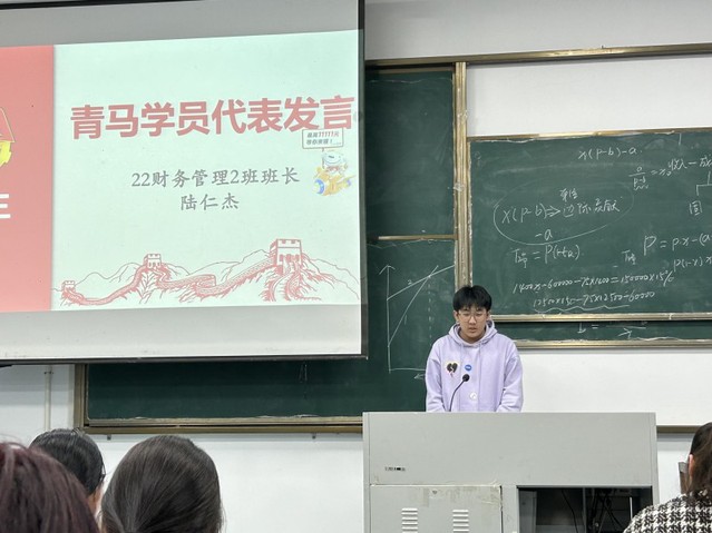 仪式开始,全体师生起立,奏唱中国共产主义青年团团歌。ylzzcom永利总站线路检测实践与志愿者工作部副部长王贵贤宣读本次“青马工程”培养方案及考核要求。自律会成员毛璐璐和22财务管理2班班长陆仁杰代表全体青马学员做出郑重承诺。最后,杨治菁老师向全体同学介绍了“青马工程”初级班的意义,勉励学员们在培训中提升个人实践技能,努力成为同学学习的榜样。