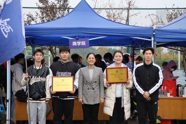 11月17日,在精彩的校运会开幕式表演结束之后,校运会热烈的氛围已经达到了顶峰。随着参赛人员的陆续检录,田径场上已然充满运动比拼的“硝烟”。一声又一声的枪响,一浪接一浪的喝彩声以及那一阵又一阵被带起的风,无一不显示着此次运动会的精彩与激烈。在经历了一天的比拼之后,各运动项目都进入了决赛阶段。11月18日,运动员们摩拳擦掌,凝视着面前延伸的跑道。这是女子4X400接力的战场。发令枪响,运动员们弹射而出,如狂风过境。担忧悄然滋长,商院已然落后,一棒、二棒、三棒接连失利,失败似乎已成定局。“加油!”铺天盖地的呐喊给予了最后一棒力量。反超了!一名、两名、三名!冲线!一声惊呼,目光锁定在那矫健的身姿上,是男子二百米的王烨同学,他把风踩在脚下,带着无可匹敌的自信,夺下第一!胜利再次降临,我院健儿们又为商院赢得男子4X100第二名的好成绩。