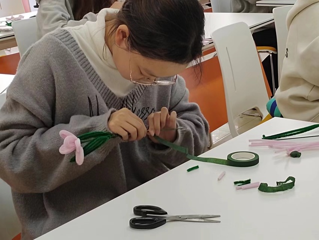 “玉壶存冰心,丹青绘师恩”,恩师情,永不忘,同学们动手创作数字油画,一点一线铺满回忆,一画一染道尽恩情;“谆谆教导语,殷殷似友亲”,授知识,传品德,同学们用心构铸钉子画,钉子钉上的是千万个投桃报李般的感念;“轻盈数行字,浓抹一生人”,传教诲,益无穷,同学们巧手编织手工玫瑰,缠缠绕绕注入感情,殷殷切切献上祝福;“寄望后来者,成功报师情”,念恩师,心头暖:同学们将感激之情融入到了实际行动中,希望暖暖的春风能拂去女教师们的疲惫,希望在这个春光明媚的节日里,老师们能够幸福快乐!