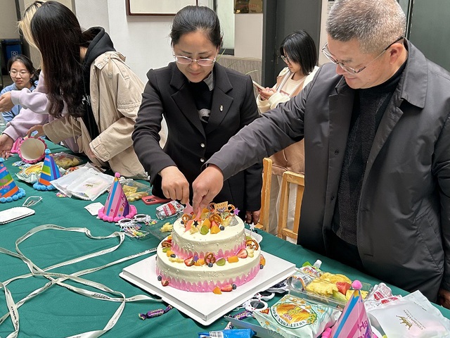 当天下午3点,同学们在元培大厅齐聚一堂,通过欢乐的“数7”游戏,开启了生日会的序幕,在愉快的氛围中,同学们共同许下未来的心愿,唱响生日快乐歌。“今天是我20岁的生日,也是我第一次过集体生日,能和母校一起庆生,我将终生难忘。” 22财务管理1班周亚丽同学在接过马仕锦副书记递过来的蛋糕时激动地说。