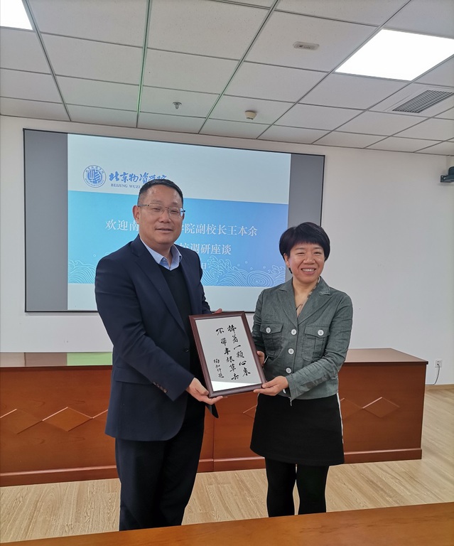 在北京物资学院,王本余副校长一行参观了国家级物流系统与技术实验教学示范中心,与北物院副校长张旭凤以及教务处、物流学院等相关部门负责人开展了深入的交流,双方各自介绍了学校的整体办学情况,特别是在产教融合、产业学院建设、实践基地建设以及实验平台等领域充分交流,双方一致表示要加强沟通交流,深化开放合作,实现优势互补,促进共同发展。