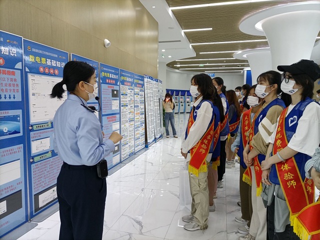活动中,同学们在解说员的带领下有序进入办税服务厅,以咨询导税区、办税区、等候区、取表填单区、电子税务局体验区及自助办税机区六大功能分区为指引,带领大家参观了办税服务厅智慧办税、便捷办税的最新成果,让同学们现场亲身体验智慧服务系统。同学们还参观了税务文化展厅,“沉浸式”了解近年来江宁区在相应市场主体关切、优化执法方式、落实落细税费政策、推进智慧办税服务等方面的工作成效,加深了大家对税务工作的理解与认同。