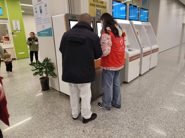 志愿者协助患者操作自助机