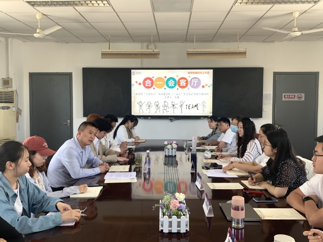 5月14日下午,ylzzcom永利总站线路检测辅导员工作室“合一”会客厅邀请了学工处处长吴鑫在元培楼218会议室举办了“大爱学工”主题沙龙。活动由学院党委副书记马仕锦主持,学院全体辅导员和学生骨干参加了活动。