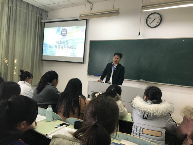 汤学长现身说法,言辞诚恳地给学弟学妹们提出了四点建议:一是珍惜大学的学习环境,努力提高学习成绩,大学生活不要留遗憾;二是要处理好工作期许与现实的冲突;三要耐得住寂寞,要有吃苦的精神,你做的每件事走的每一步,都算数,都会在以后的人生积累中体现;四是要实现与工作匹配,需具备品德匹配、意识匹配、能力匹配三个方面。