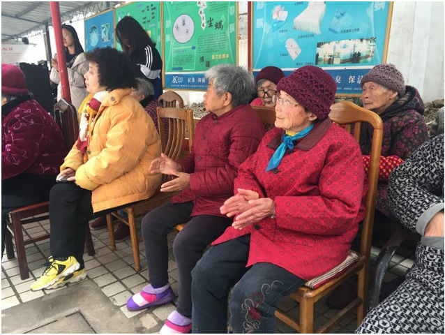 志愿者与老人们一同阅读黄岳的来信、听老人讲述黄岳的事迹