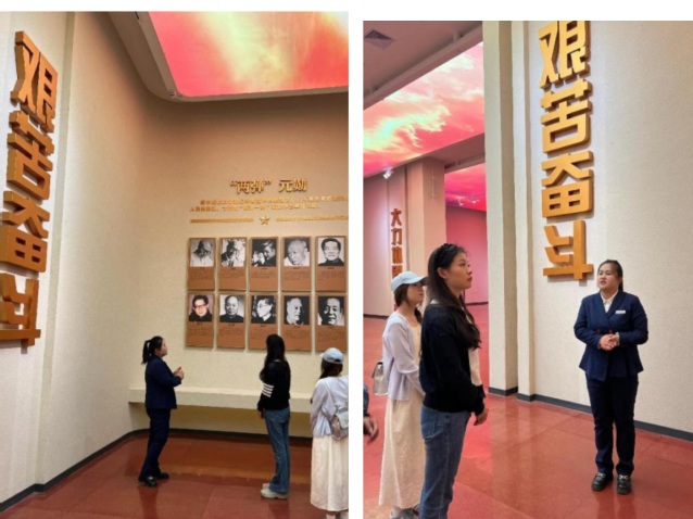 场馆内工作人员在和团队讲解关于“两弹”元勋的英雄事迹