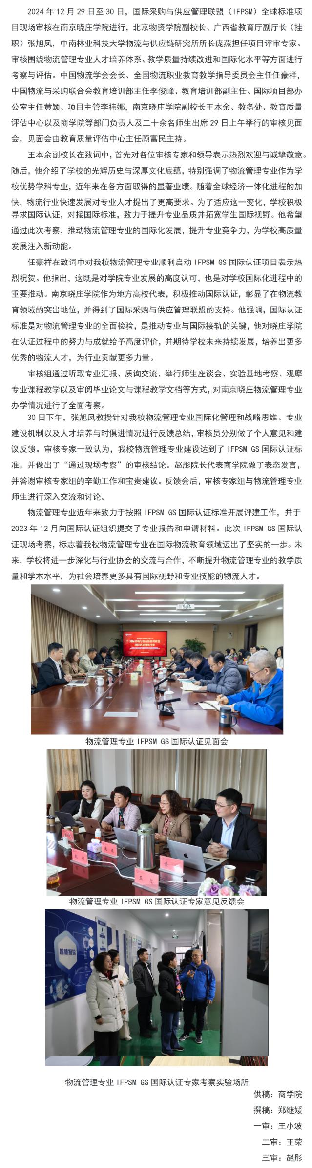 南京晓庄学院物流管理专业完成IFPSM GS专业认证现场审核